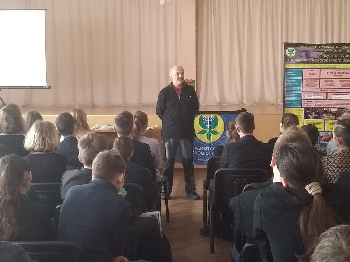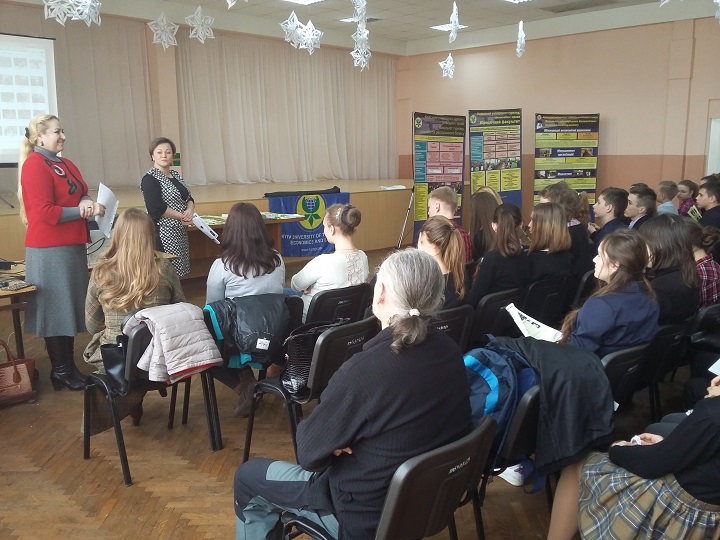 Представники університету та училища провели бесіду з учнями, під час якої учні докладно ознайомились з кожною спеціальністю (професією), яку вони можуть отримати, закінчивши наші навчальні заклади. Представники університету та училища розповіли про історію створення університету, порядок вступу та переваги, які отримують студенти КУТЕП та ЕЮУ, презентували рекламно-інформаційні буклети, провели цікаву географічну вікторину з визначенням переможців та врученням подарунків та сертифікатів на безкоштовну екскурсію. Учні зацікавились отриманою інформацією, активно приймали участь у вікторині.