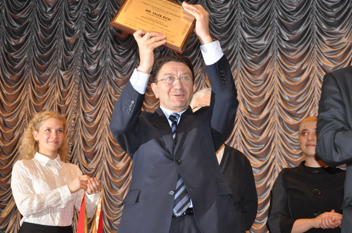 In response to the greeting UN WTO Secretary General Mr. Taleb Rifai expressed his gratitude for the high award and a very warm welcome, said that he considered this event as an act of recognition of the global tourism and the role it plays in solving the major problems of today, since the economic crisis and ending poverty and climate change, as well as a contribution to the work of the World Tourism Organization to promote the idea of sustainable tourism development.