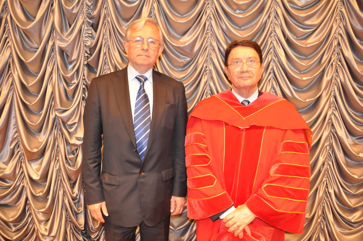 After the announcement of the decision of the Council to the Secretary General KUTEL UN WTO was given certificate and the mantle of Honorary Professor of KUTEL. All those present in the audience warmly welcomed Mr. Taleb Rifai of awarding him an honorary academic titles.